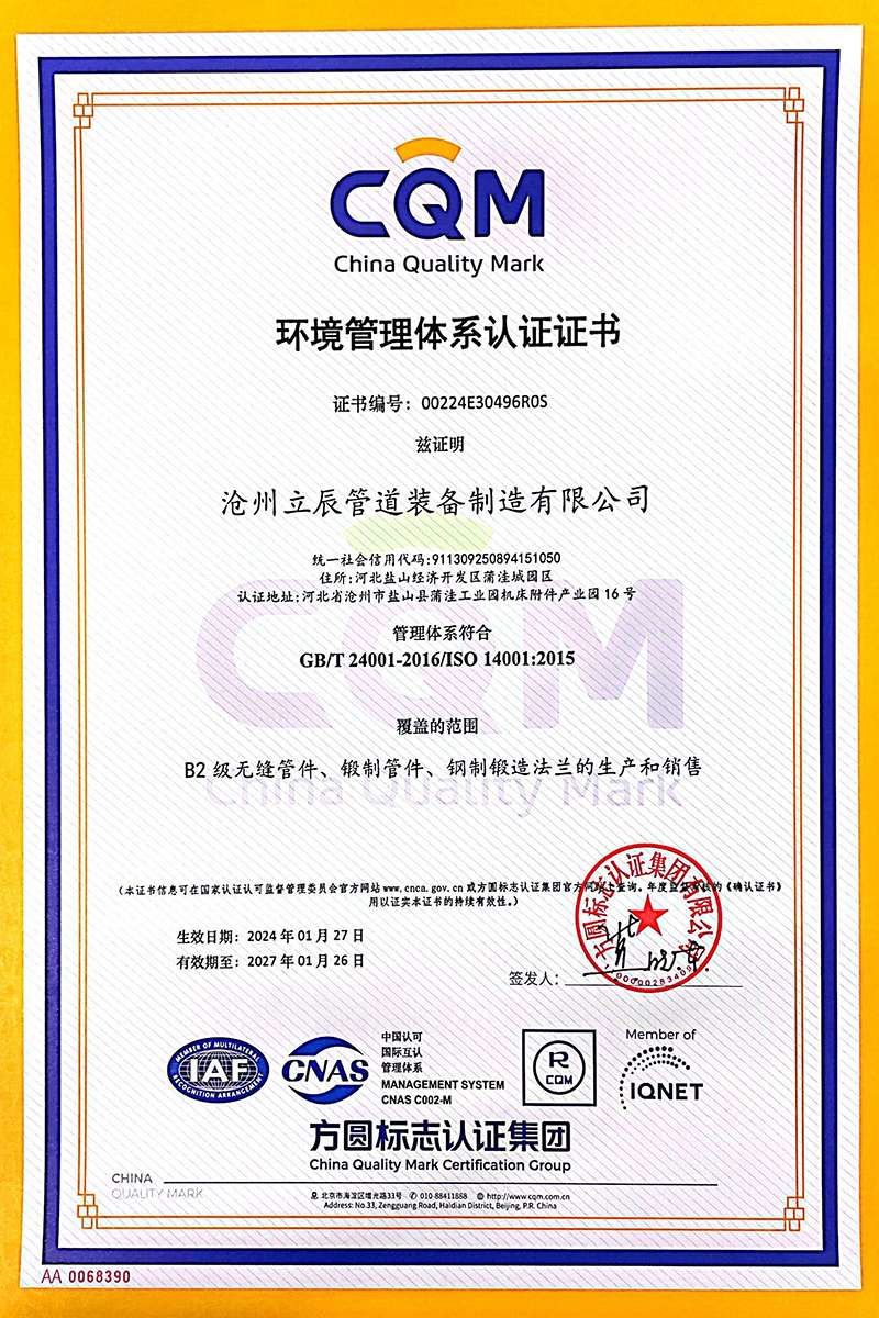 環(huán)境管理體系認證證書